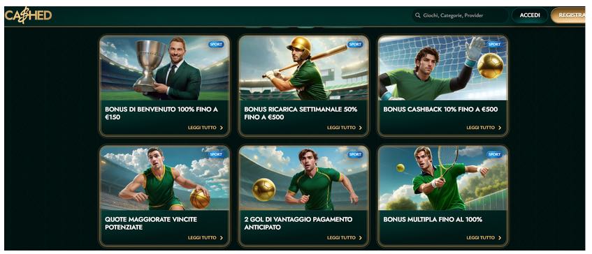 4. Cashed – Operatore affidabile con quote stabili e bonus ricarica dedicati.