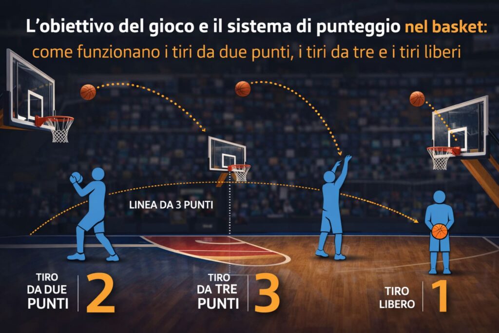 L’obiettivo del gioco e il sistema di punteggio nel basket: come funzionano i tiri da due punti, i tiri da tre e i tiri liberi