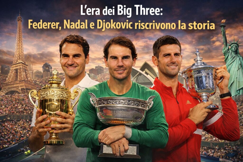 A partire dalla metà degli anni 2000, il tennis maschile è entrato in un’era di dominio assoluto, segnata da tre fuoriclasse che hanno riscritto la storia di questo sport: Roger Federer, Rafael Nadal e Novak Djokovic. La loro presenza contemporanea ha dato vita a una delle epoche più competitive e affascinanti mai viste.